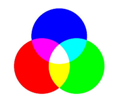 「RGB」は「光の三原色」と言われ、R(赤)・G(緑)・B(青)の合わせてさまざまな色をだしてすべての色を出して、表現しております。すべて重なると「白」になります。